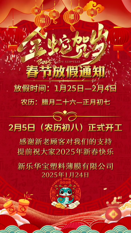 新樂華寶塑料薄膜有限公司是河北華寶塑機(jī)股份有限公司的子公司,成立于1999年。公司位于河北省新樂市,距石家莊國(guó)際機(jī)場(chǎng)6公里,距北京228公里,距天津港275公里,緊臨107國(guó)道和京珠高速公路,交通便利。 公司注重技術(shù)創(chuàng)新,引進(jìn)先進(jìn)水平的生產(chǎn)工藝及加工設(shè)備,專業(yè)從事PE流延膜的開發(fā)、研制和生產(chǎn),是生產(chǎn)PE流延膜的專業(yè)廠家。主要產(chǎn)品有:三層共擠PE流延膜、透氣膜、居中印刷復(fù)合膜、低克重...更多